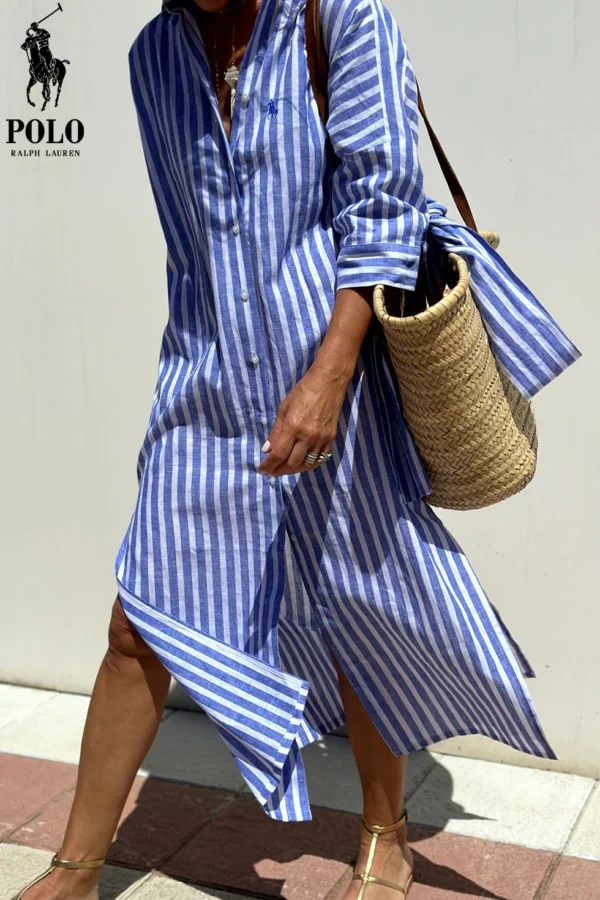 Whether you’re heading to brunch with friends, a day at the office, or an evening out, the Ralph Lauren – Elegant Shirt Dress rises to every occasion. Its flattering cut and elegant stripes make it a true standout piece, while its breathable fabric ensures you stay comfortable all day.