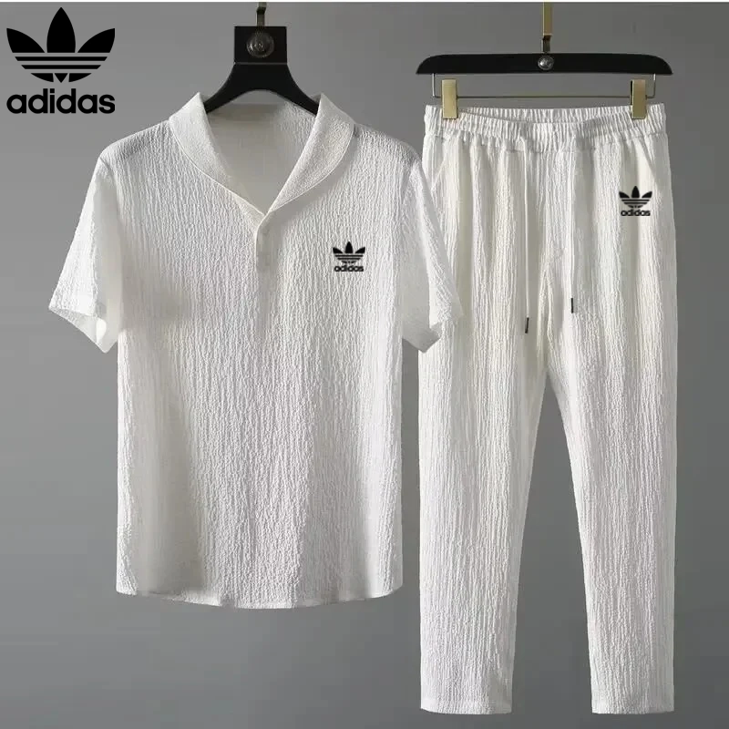 Made from breathable, textured fabric, the Adidas – New Trendy Set features a relaxed short-sleeve top with a stylish open collar and matching drawstring pants. The soft, crinkled material ensures ventilation and flexibility, making it ideal for warm days or cozy indoor moments.