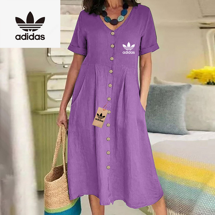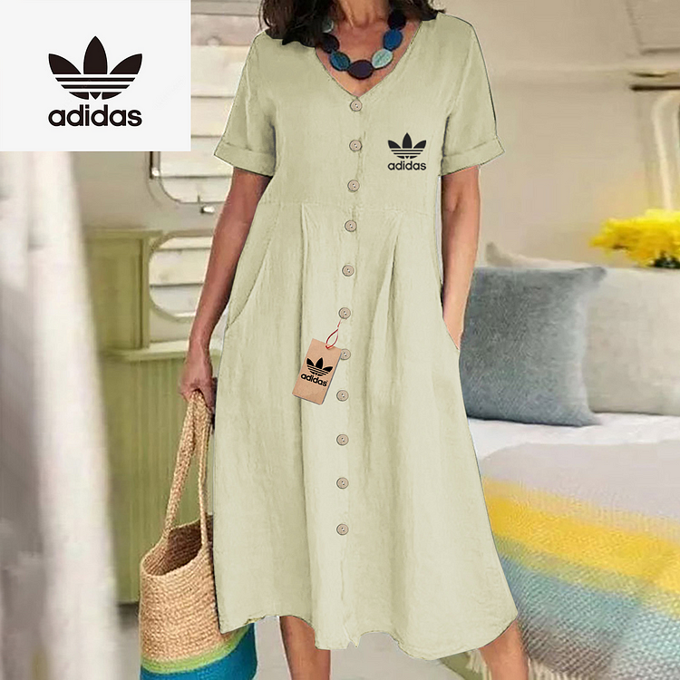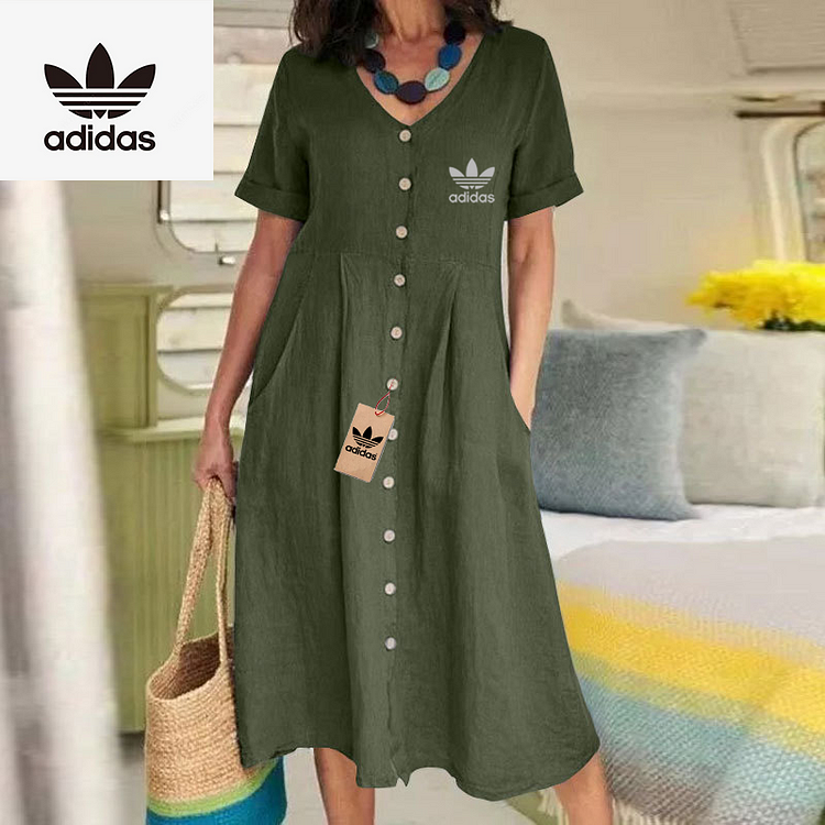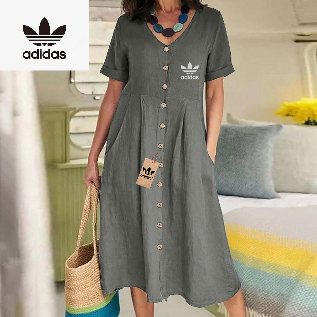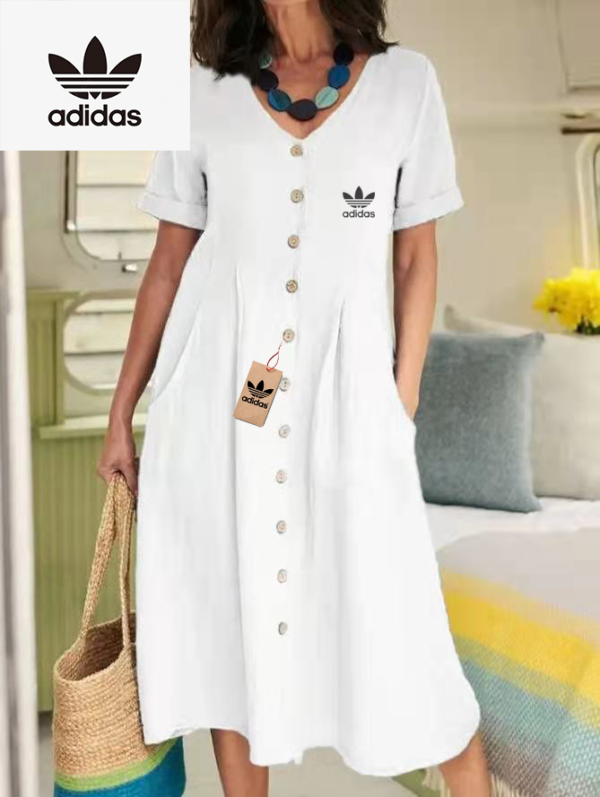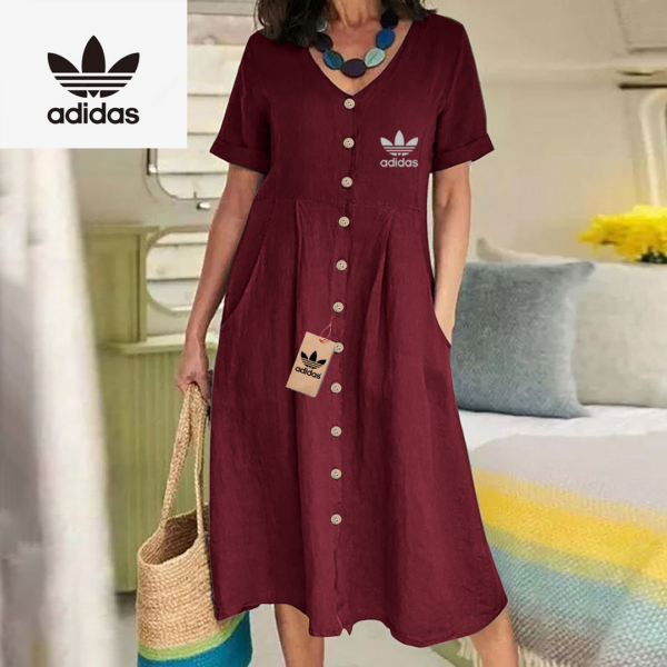 The Adidas – New Women’s Dress combines modern elegance with casual charm. Its flowing silhouette and button-down front make it ideal for day to day wear while maintaining a flattering, relaxed shape. Designed with simplicity in mind, this dress delivers timeless style for any setting.